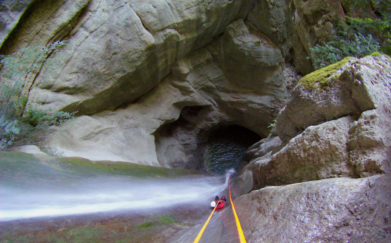 canyon niveau "avancé" - Age : à partir de 14 ans. Savoir nager et être à l'aise dans l'eau. Il faut impérativement avoir déjà fait un rappel de 20-25m.