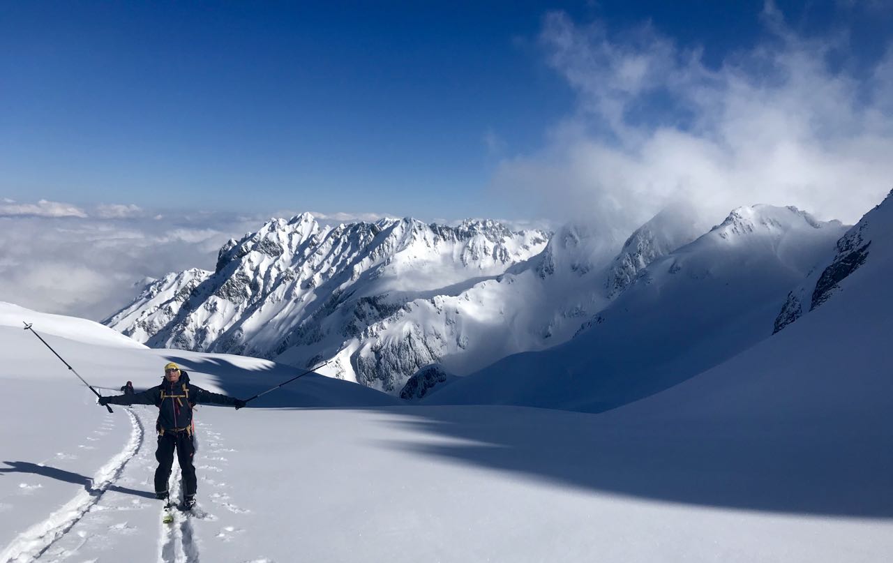Expérience du ski de randonnée requise. Maitrise des conversions à la montée dans des pentes 35°. Bon skieur toute neige (poudre, neige dure, carton etc) à la descente.