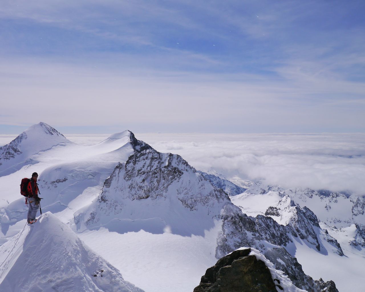 Expérience du ski de randonnée requise. Maitrise des conversions à la montée dans des pentes 35°. Bon skieur toute neige (poudre, neige dure, carton etc) à la descente. Pour Piz Bernina/Palu : savoir cramponner dans des pentes à 40/45° en neige-glace.