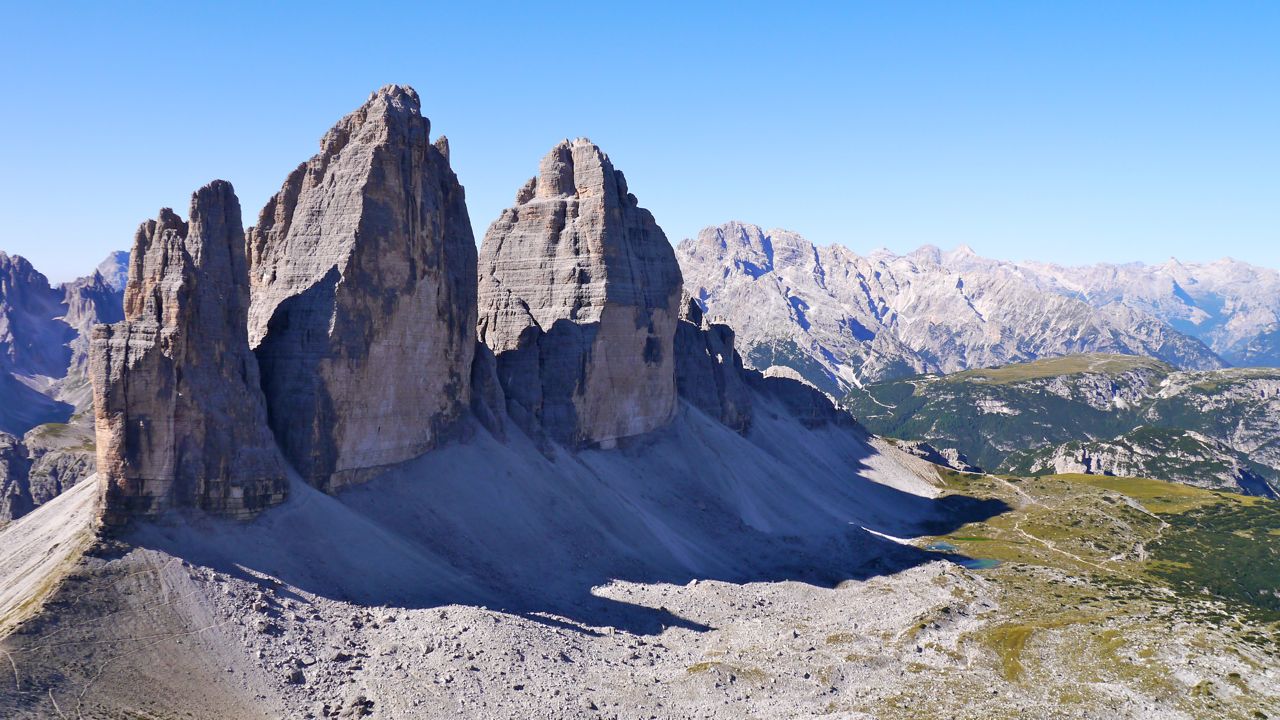 Rien que sur le site des Tre Cime, on peut grimper une semaine entière ! Bien sûr il y a d'autres endroits aux alentours qui permettent de grimper (comme le massif des Tofanes) et aussi d'admirer les Tre Cime dans leur ensemble : Cima Ovest, Cima Grande, Piccola, Punta Frida et Piccolissima.