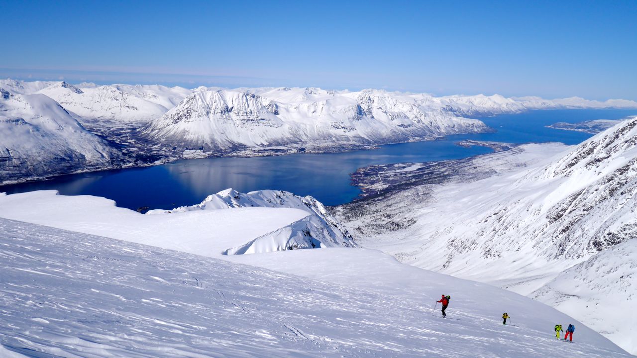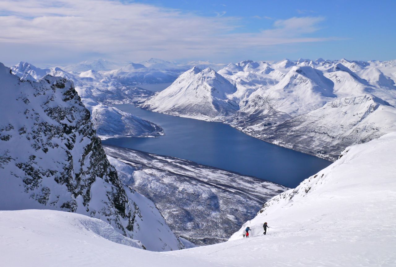 Voyage ski de randonnée dans les Alpes de Lyngen au nord de la Norvège avec un guide de haute montagne. Un endroit extraordinaire, unique et grandiose de part ses paysages, ses lumières, ses aurores boréales, et ses immenses possibilités de ski de randonnée. Une destination majeur pour le ski de randonnée, à faire au moins une fois dans sa vie. Deplus la Norvège est accessible en train, que ce soit le Romsdalen, les Lofoten ou les Alpes de Lyngen.